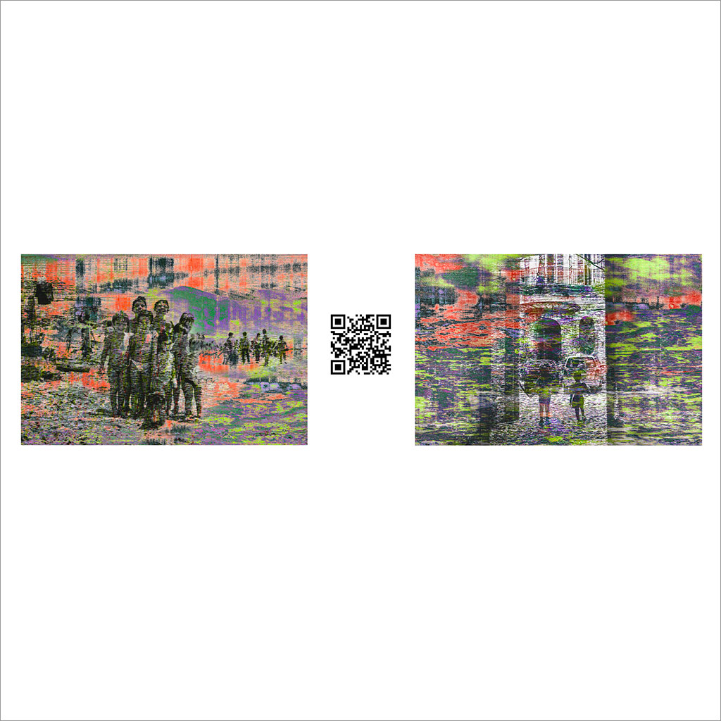Trasposizione dei ricordi dei bambini tarantini, l’opera è un ponte tra varie generazioni, tra passato e presente della città. Le foto d’archivio sono testimonianze rielaborate attraverso programmi di editing audio per creare nuovi colori che risemantizzano gli scatti. È un processo che converte l’immagine in suono (ascoltabile con QR code), trasformato poi in nuova forma per innescare riflessioni sui valori del passato, tracciando un dialogo tra l’individuo e una comunità in continua trasformazione