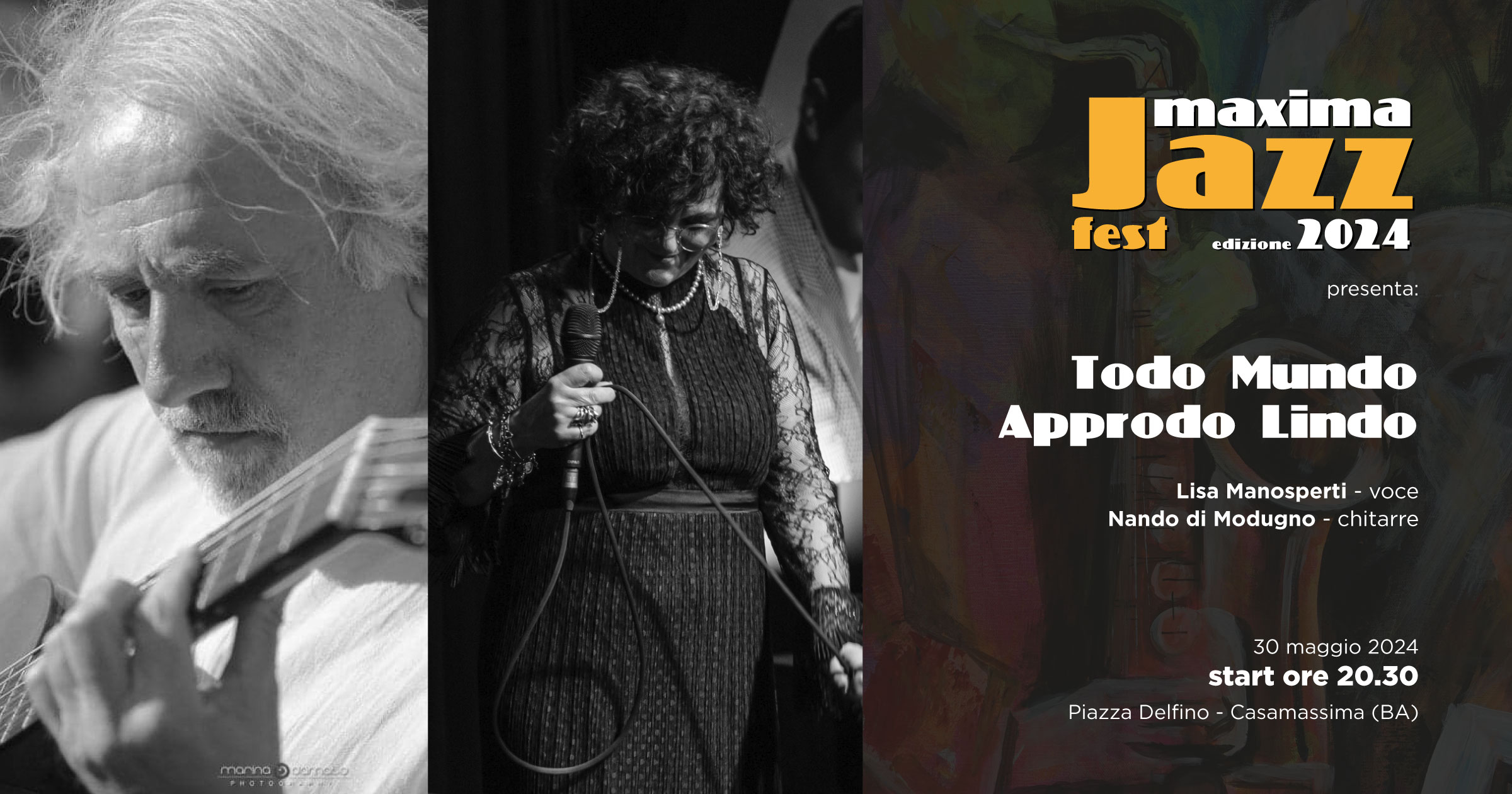 TODO MUNDO APPRODO LINDO è un progetto di ampio respiro che vede uno dei chitarristi più rappresentativi della scena sia jazz che classica della nostra bella regione, Nando di Modugno, duettare con la voce scura e passionale di Lisa Manosperti. Entrambi ci coinvolgono in un viaggio tra due sponde dell’Atlantico, quella della penisola iberica e quella del Brasile, il Brasile più nero, quello dei racconti di Jorge Amado.