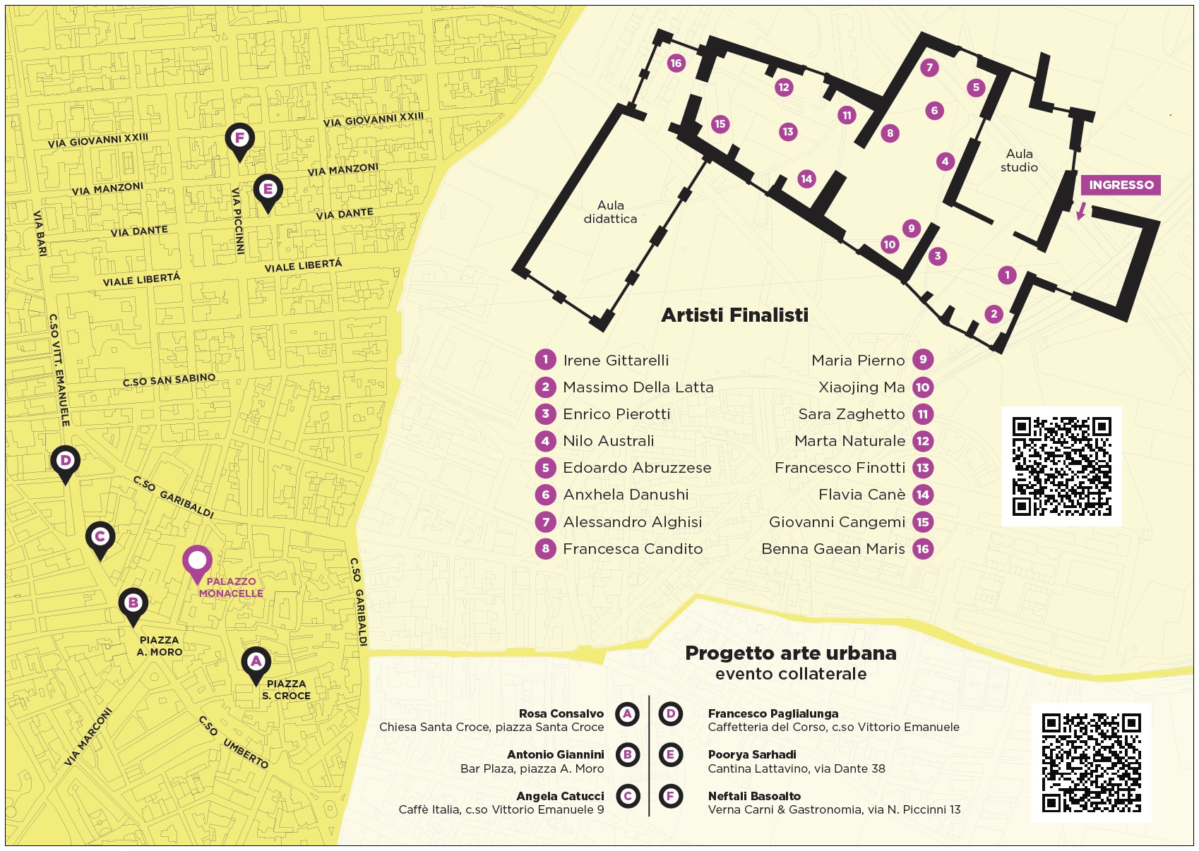 Gli artisti del progetto urbano (iniziativa collaterale) sono: Angela Catucci, Rosa Consalvo, Antonio Giannini, Francesco Paglialunga, Freddy Sanchez Espinoza e Poorya Sarhadi. I luoghi scelti: la Parrocchia Santa croce nel borgo antico, il Bar Plaza in piazza Moro, Caffetteria del corso su corso Vittorio Emanuele, Caffè Italia nei pressi di piazza Moro, Cantina Lattavino su via Dante, e Verna Carni & Gastronomia su via Piccinni.